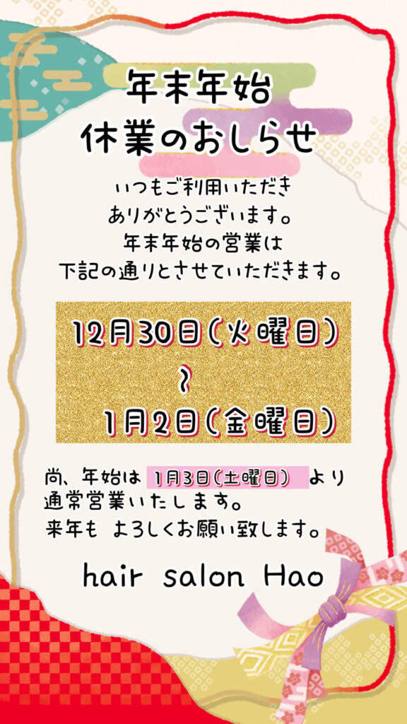 3. 年末年始の営業のお知らせ